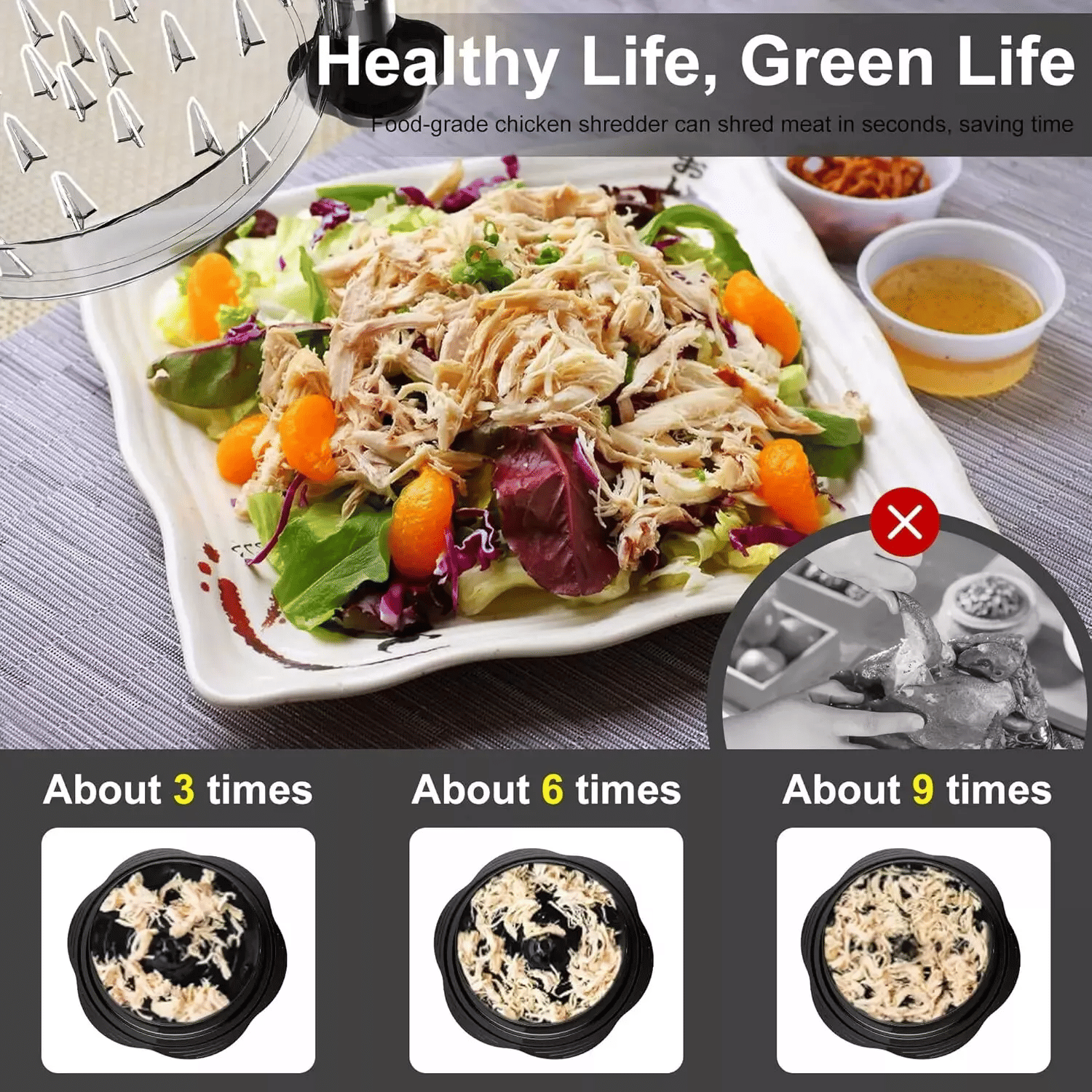 - The chicken shredder twist adds more cross spikes and transparent lid designs. Chicken can be easily chopped in just a few seconds without powder and won't get stuck by the bottom edge. The transparent lid can help you choose the desired level of shredding and improve cooking efficiency.