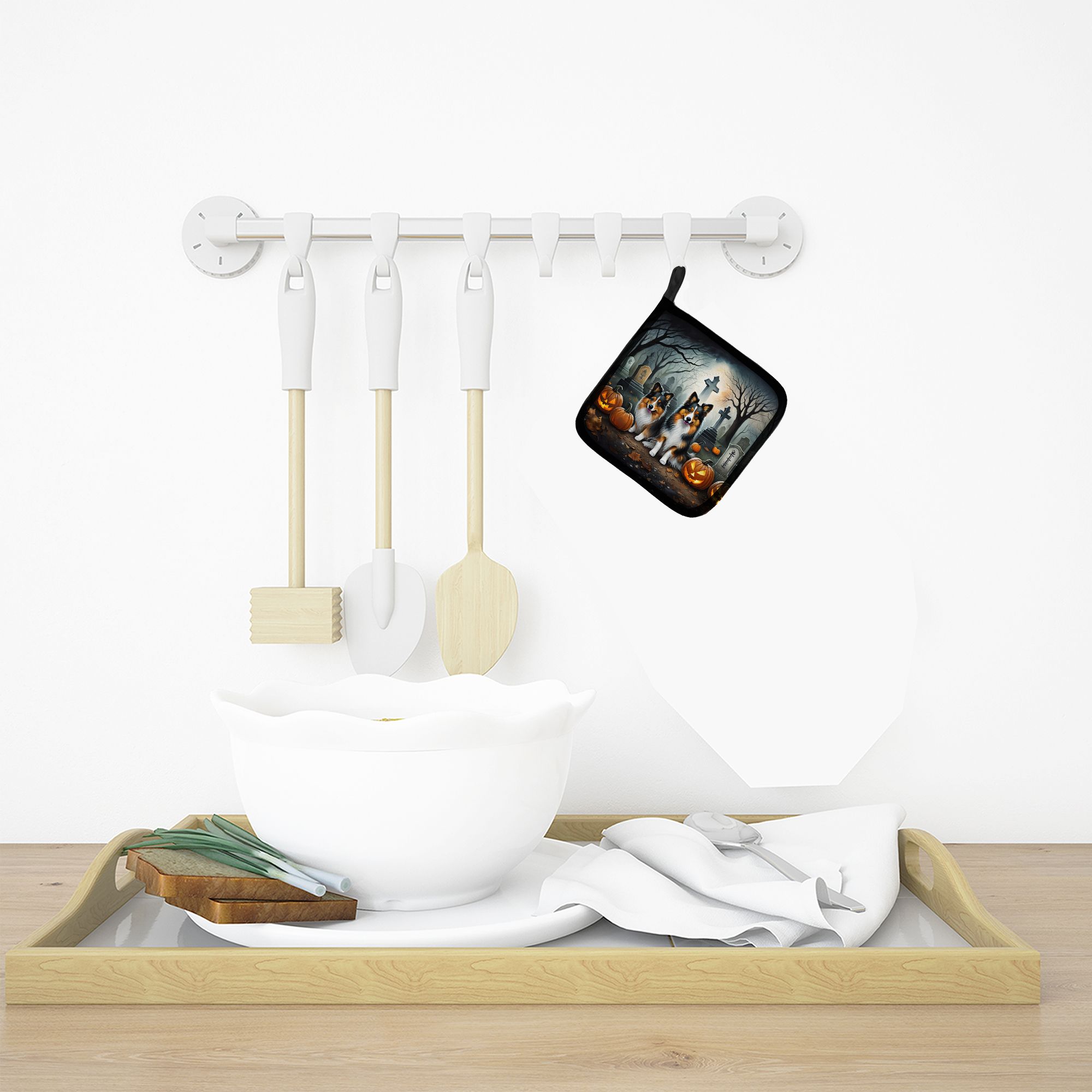 Sheltie Spooky Halloween Pair of Pot Holders Kitchen Heat Resistant Pot Holders Sets Oven Hot Pads for Cooking Baking BBQ, 7 1/2 x 7 1/2