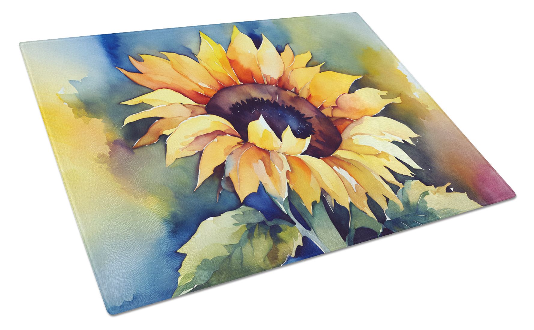Home > NEW Sunflowers in Watercolor Glass Cutting Board Decorative Tempered Glass Kitchen Cutting and Serving Board Large Size Chopping Board