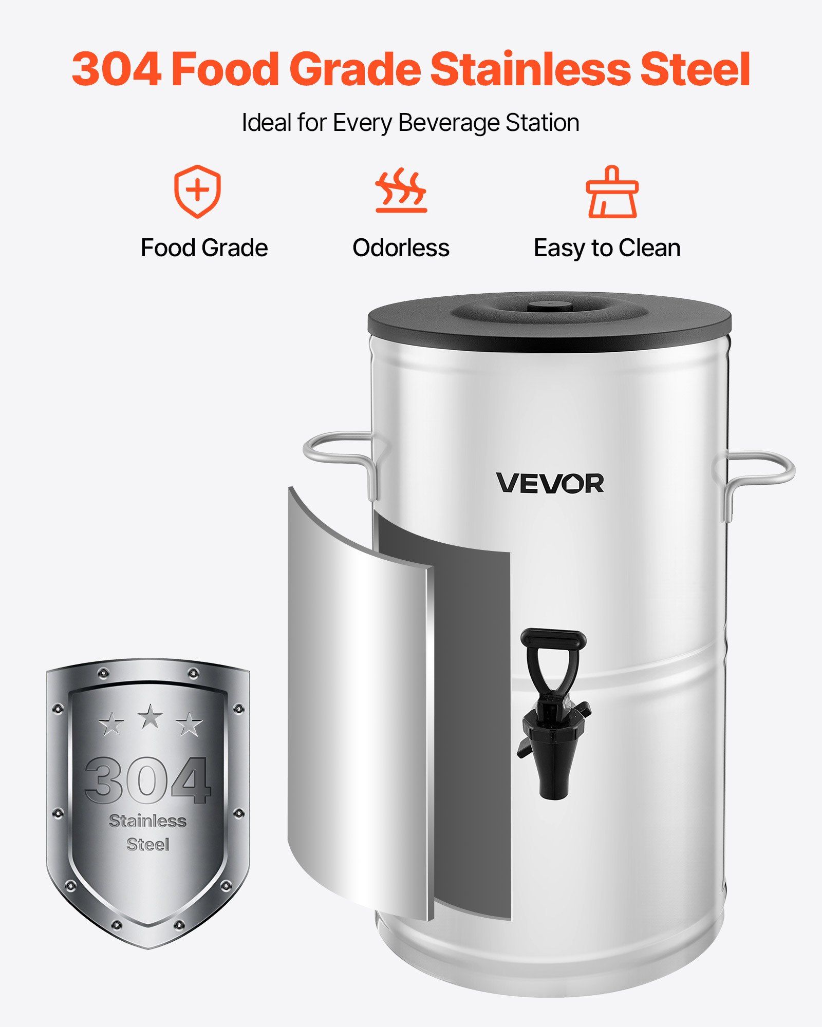 3.Food-Grade Material: The ice and hot beverage dispenser is made from a 304 food-grade stainless steel interior that meets food security standards. It's rust-resistant, corrosion-proof, odor-free, and easy to clean - designed for long-term use